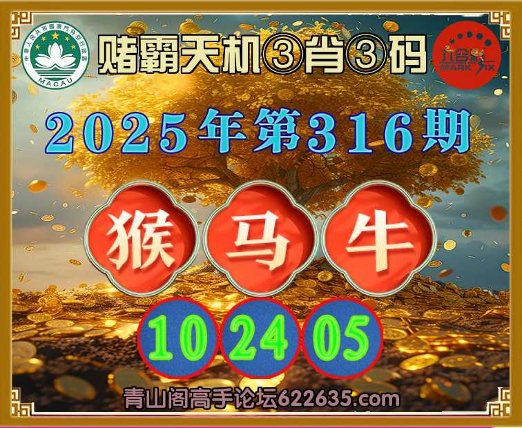316期:《赌霸天机》 🩴③肖③码🩴【猴牛】【10.24.05】开:马24