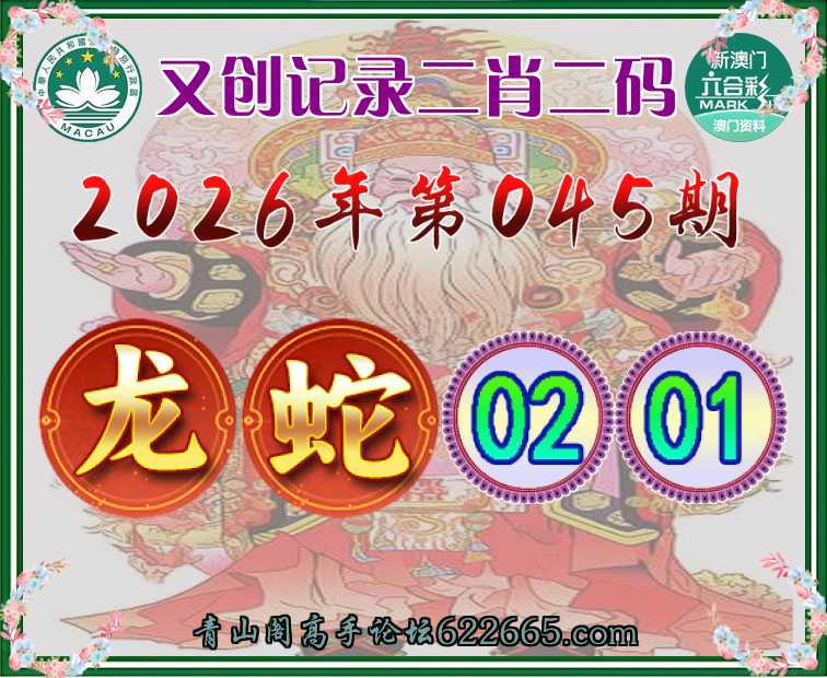 045期: 🥩《又创记录》 🥩二肖二码🥩【龙】【02.01】开:蛇01