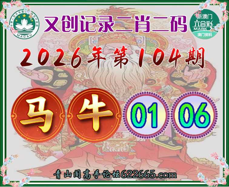 104期: 🥩《又创记录》 🥩二肖二码🥩【牛】【01.06】开:马01准上榜高手